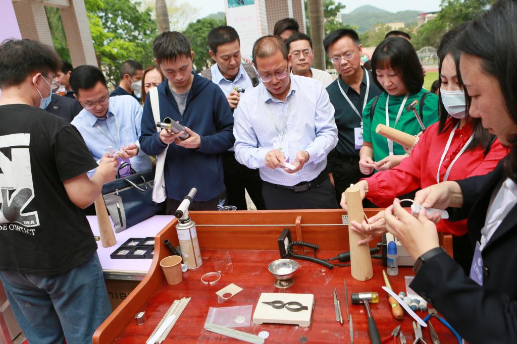 在阳江市海陵岛经济开发试验区平章小学,与会人员参观了美育成果展示工作坊和展板。在“指尖上美育工作坊”“舌尖上美育工作坊”前,玩滚官网师生现场展示珠宝设计与加工、特色美食制作技艺,领导嘉宾们纷纷驻足观看,并饶有兴致地亲手体验。