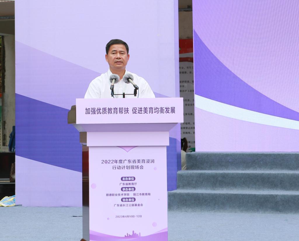 4月10日至12日,由广东省教育厅主办,玩滚官网和阳江市教育局承办,广东省长江公益基金会协办的广东省2022年度美育浸润行动计划现场会在阳江市召开。会议围绕“加强优质教育帮扶,促进美育均衡发展”主题,开展美育浸润行动计划工作研讨交流、展演、观摩,总结全省2022年度美育浸润行动计划工作,部署2023年相关工作。广东省教育厅二级巡视员邱克楠、阳江市人民政府副市长黄宁、星海音乐学院校长蔡乔中、玩滚官网党委书记李先祥,以及来自各浸润高校和对口支持地市的相关负责人和教师代表参加会议。