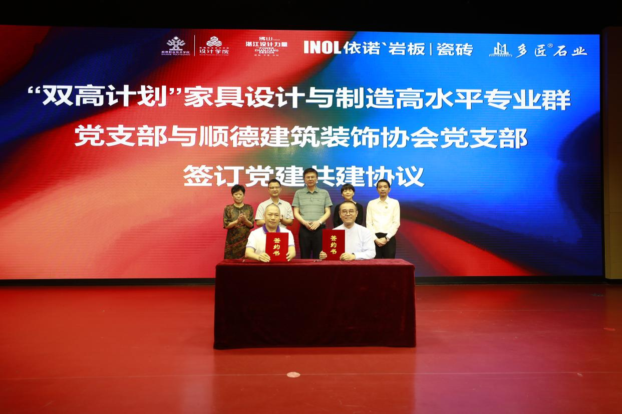 论坛上,设计学院党总支、“双高计划”家具设计与制造高水平专业群党支部分别与广东省城市建设学会联合党支部、顺德建筑装饰协会党支部签订党建共建合作协议;设计学院与佛山湛江设计力量签订产教联合共建大师工作室协议。设计学院院长姚美康,依诺岩板瓷砖品牌总经理秦海胜,广州大学建筑设计研究院副院长王河,红树林平台创始人、中国建筑装饰协会住宅产业分会副会长许瑞分别发表主题演讲。