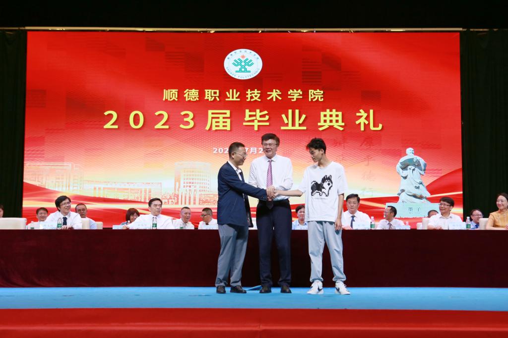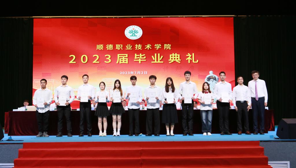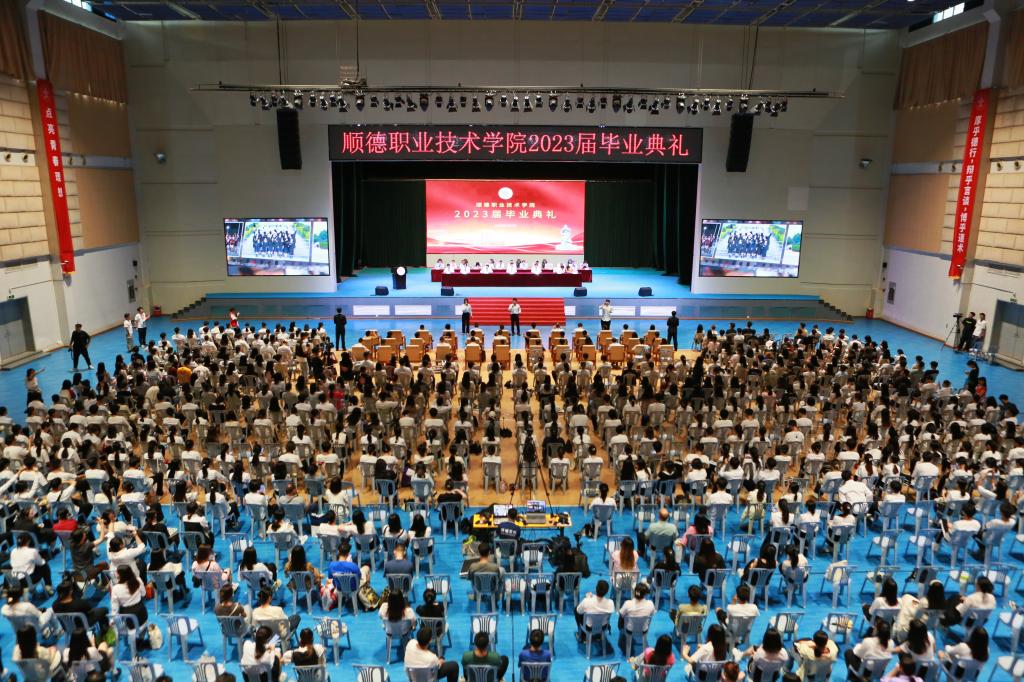 梁銶琚礼堂内,气氛庄重热烈。眺台上悬挂着“矢志不渝、笃行不怠,为建设具有中国特色、国内领先、国际知名的高水平顺德职业技术大学而团结奋斗!”的横幅,礼堂两侧悬挂着“点亮青春理想”“激昂奋斗旋律”“澎湃创新动力”“淬炼斗争精神”等条幅,会场后方“奋发蹈厉启新篇 笃行致远向未来”的标语格外醒目——这些来自母校的殷殷嘱托,将转化为毕业生们砥砺追梦的强大动力。