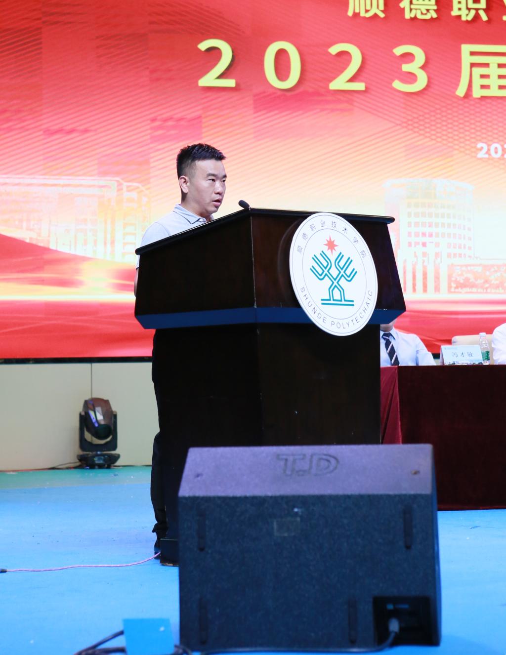 烹饪学院烹调工艺与营养专业毕业生涂洁莹的父亲涂远坚作为家长代表发言。他表示,感谢顺职院为孩子们创造优质的学习氛围和舒适的生活环境,将他们培养成具有独立人格、挺拔身姿的技术英才。希望孩子们珍爱自己的生命和身体,懂得包容,学会担当,记得感恩,永远铭记“厚乎德行,辩乎言谈,博乎道术”的校训,构建更加广阔的人生舞台。