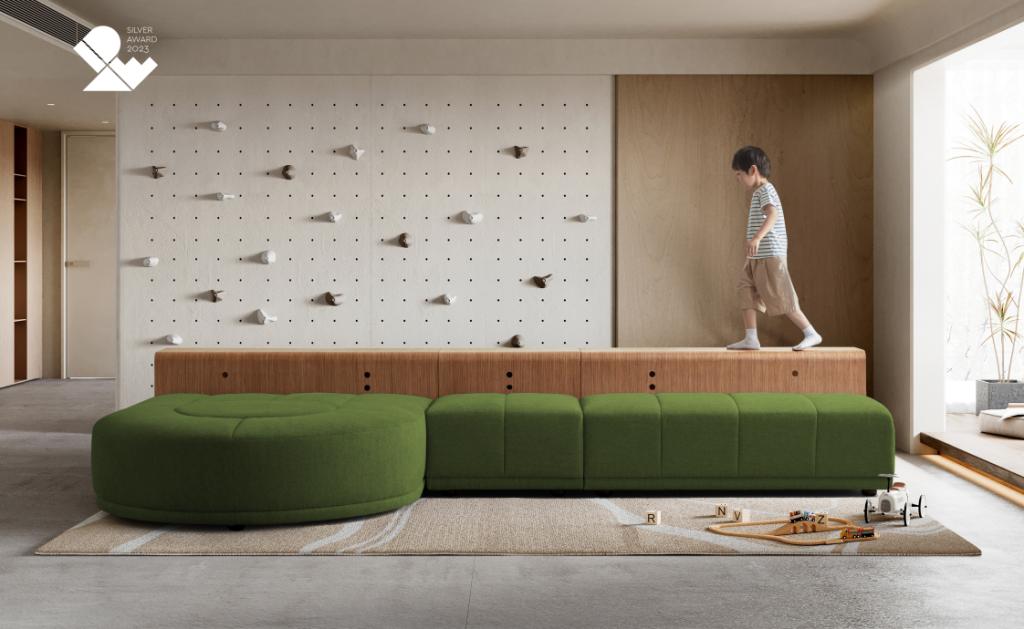 创意沙发设计作品“Pathfinder Mission”以儿童成长家庭客厅为设计场景,针对幼童热衷探索各种洞或圆孔、喜欢攀爬、喜欢从高处跳下等特点,创造性地对传统沙发进行结构和材料创新,引导儿童通过游戏去感知、探索,从而建立空间概念,让家庭小成员在探索、玩乐中健康成长。