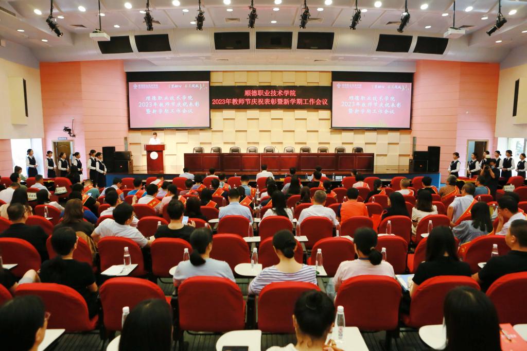 守望初心,最美绽放。在第39个教师节即将到来之际,9月6日下午,学校在学术交流中心召开2023年教师节庆祝表彰暨新学期工作会议,在全校范围内掀起学习先进、争当先进的热潮,营造乐教爱教、甘于奉献的氛围,激励全校师生进一步明确发展目标和任务,凝心聚力为建设高水平顺德职业技术大学而努力奋斗。学校党政领导班子成员、全体教职员工参加会议。会议由学校党委副书记刘毓主持。