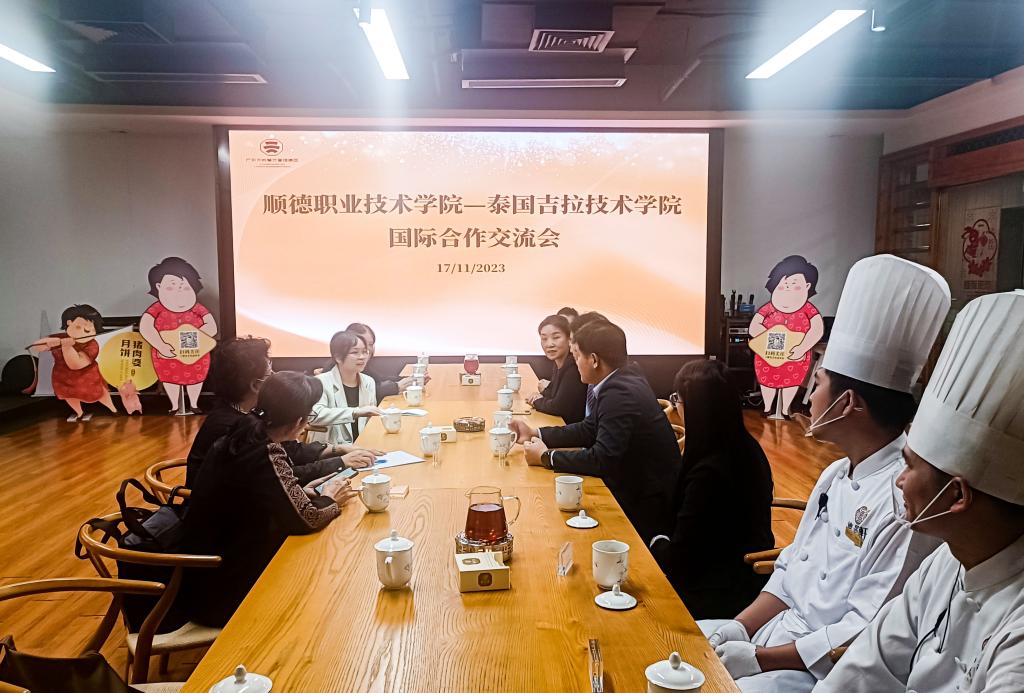 11月17日至18日,泰国吉拉达技术学院校长苏蒙塔,副校长桑塔尼,副校长、吉拉达职业学校主任努拉农,校长助理、科技与国际事务部主任布阿隆一行来到玩滚官网交流访问,与玩滚官网共同参加广东省“一带一路”职业教育联盟2023年度活动,并为两校合作共建的烹饪国际交流平台揭牌。学校党委书记李先祥,国际学院、烹饪学院负责人等参加活动。