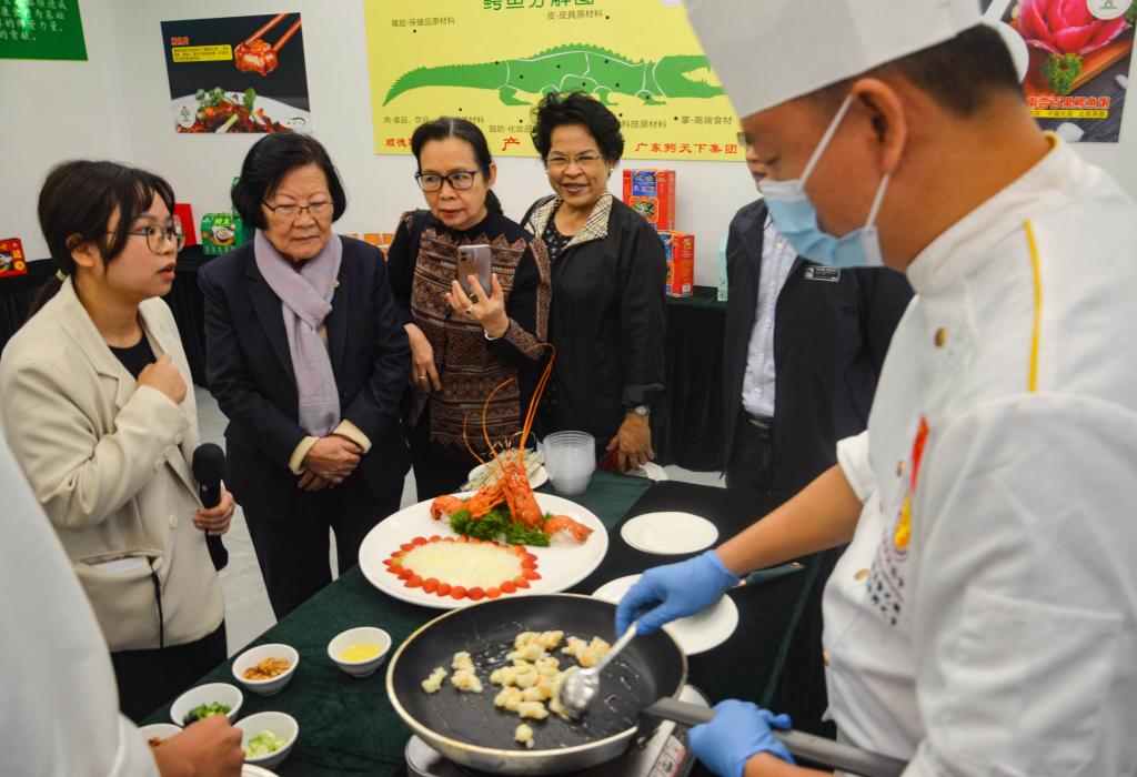 11月17日下午,苏蒙塔一行参观考察了玩滚官网烹饪学院实训中心,详细了解玩滚官网产教融合实训基地的运行模式、设施设备、师资队伍等情况,并与师生交流,高度评价玩滚官网办学成果。随后,苏蒙塔一行前往玩滚官网校外实训基地、人才培养基地——天悦餐饮集团考察,洽谈校企国际合作培养泰国粤菜技能人才方案,表示期待开展全方位产学研合作,充分发挥各方优势,培养国际技能人才。
