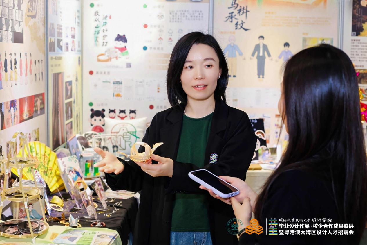招聘会现场人气旺盛,118家来自粤港澳大湾区的设计企业、文化创意公司、科技企业等现场设招聘摊位,毕业生们纷纷向心仪岗位投递简历。企业代表通过观摩毕业设计作品,直观评估学生创意能力与实践水平,实现精准人才对接。
