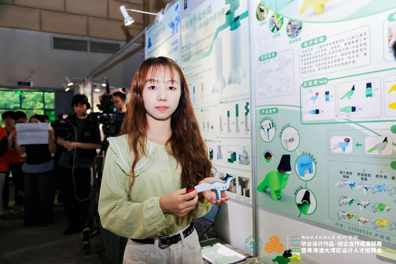活动现场展出的毕业设计作品多维诠释“共生”内涵。设计学院学子们将鱼灯、醒狮、龙舟、咏春、广绣等岭南传统文化元素与现代设计语言有机融合,实现传统与创新的“共生”。