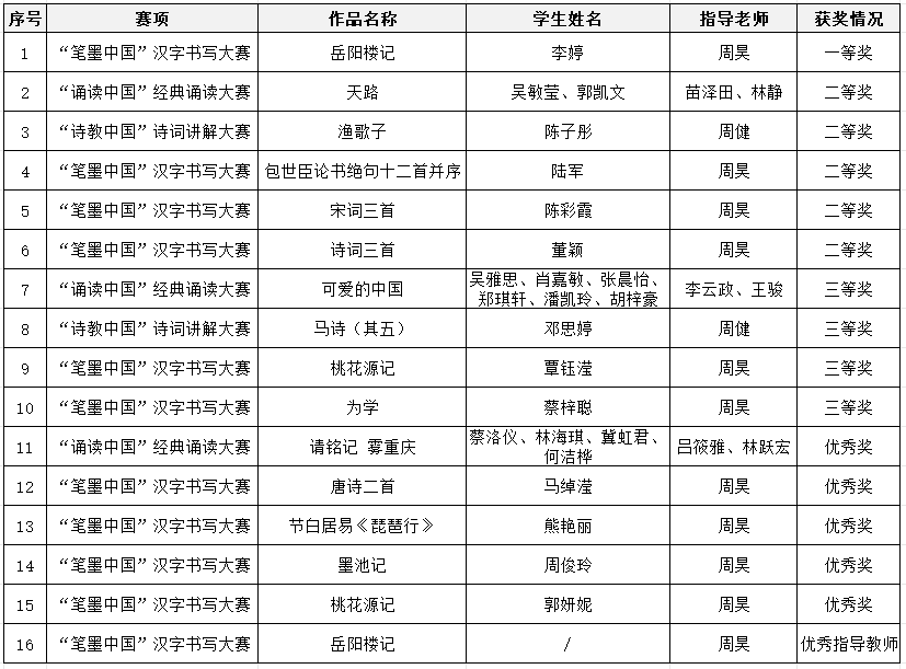 近日,第七届中华经典诵写讲大赛获奖名单公布,玩滚官网师生作品再创佳绩,共获国家级二等奖2项、三等奖2项、优秀奖3项;省级一等奖1项、二等奖5项、三等奖4项、优秀奖5项、优秀指导教师1人。