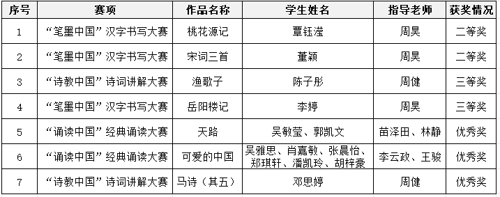 第七届中华经典诵写讲大赛省赛获奖情况