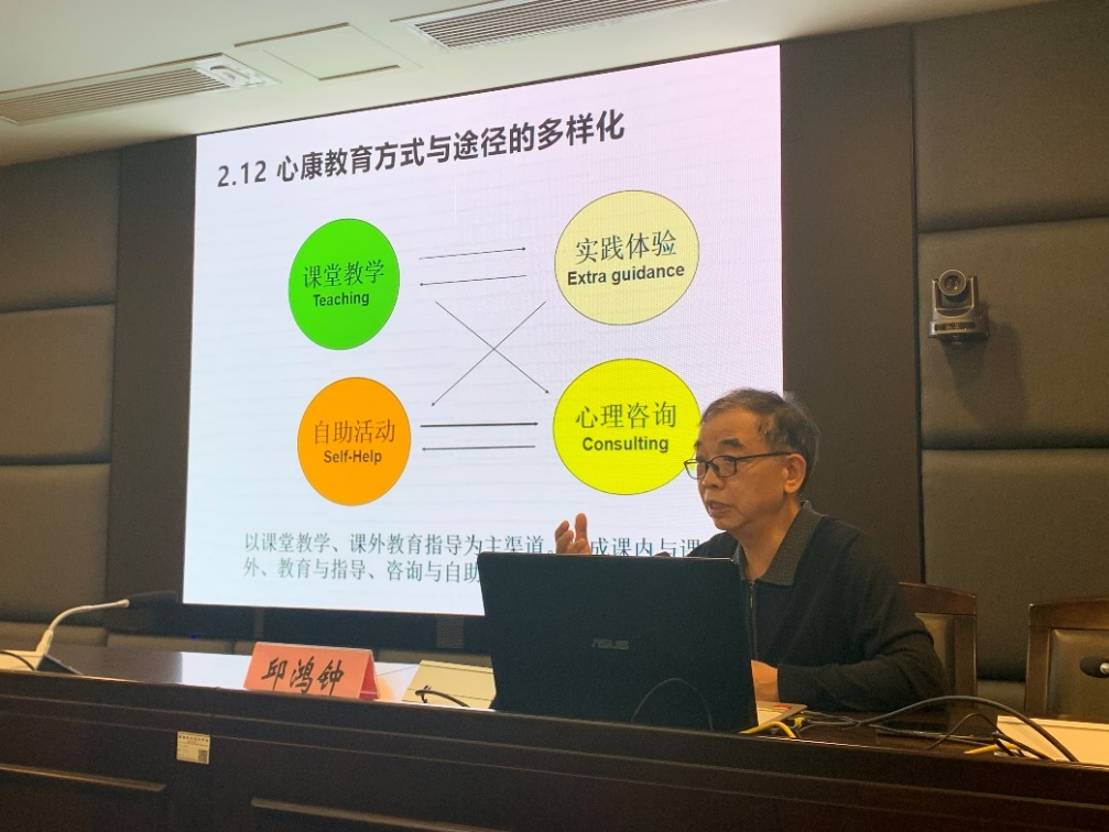 邱鸿钟教授从大学生心理健康促进工作的意义,大学生心理健康教育工作体系,辅导员在心理健康促进中的作用,心理危机事件预防、预警与干预的要点等方面进行了讲解,并解答了辅导员们的提问。