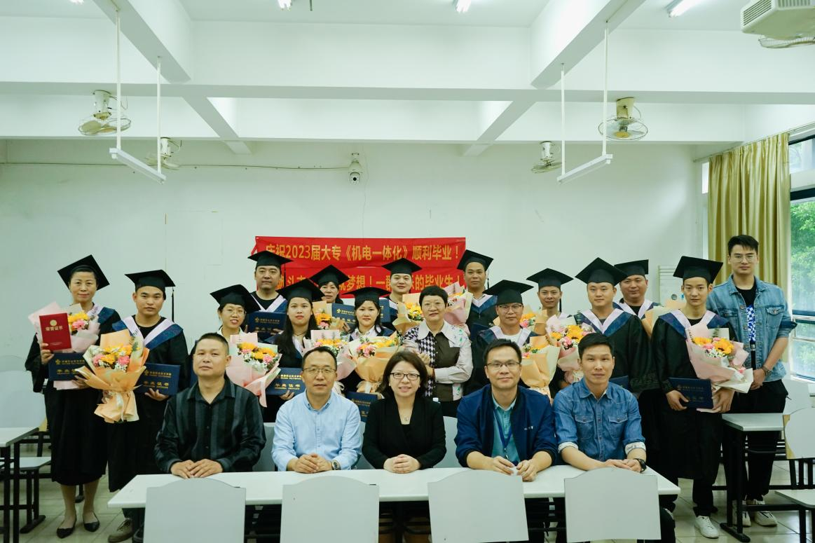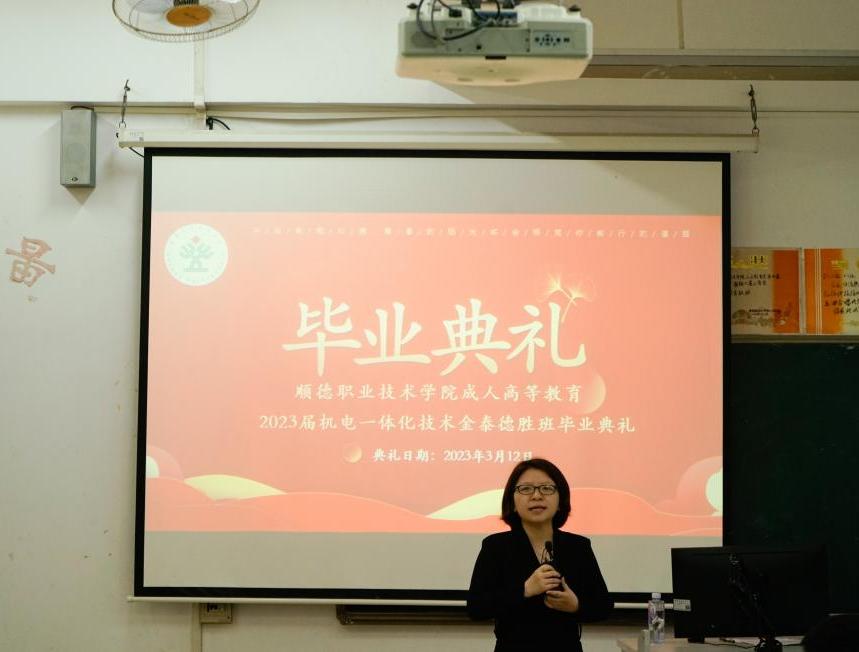 阳春三月,草长莺飞。在校企双方共同努力下,玩滚官网与佛山市顺德区金泰德胜电机有限公司合作办学结出新的硕果。3月12日上午,校企合作送教上门2023届机电一体化技术金泰德胜大专班毕业典礼在玩滚官网1号教学楼206室举行。