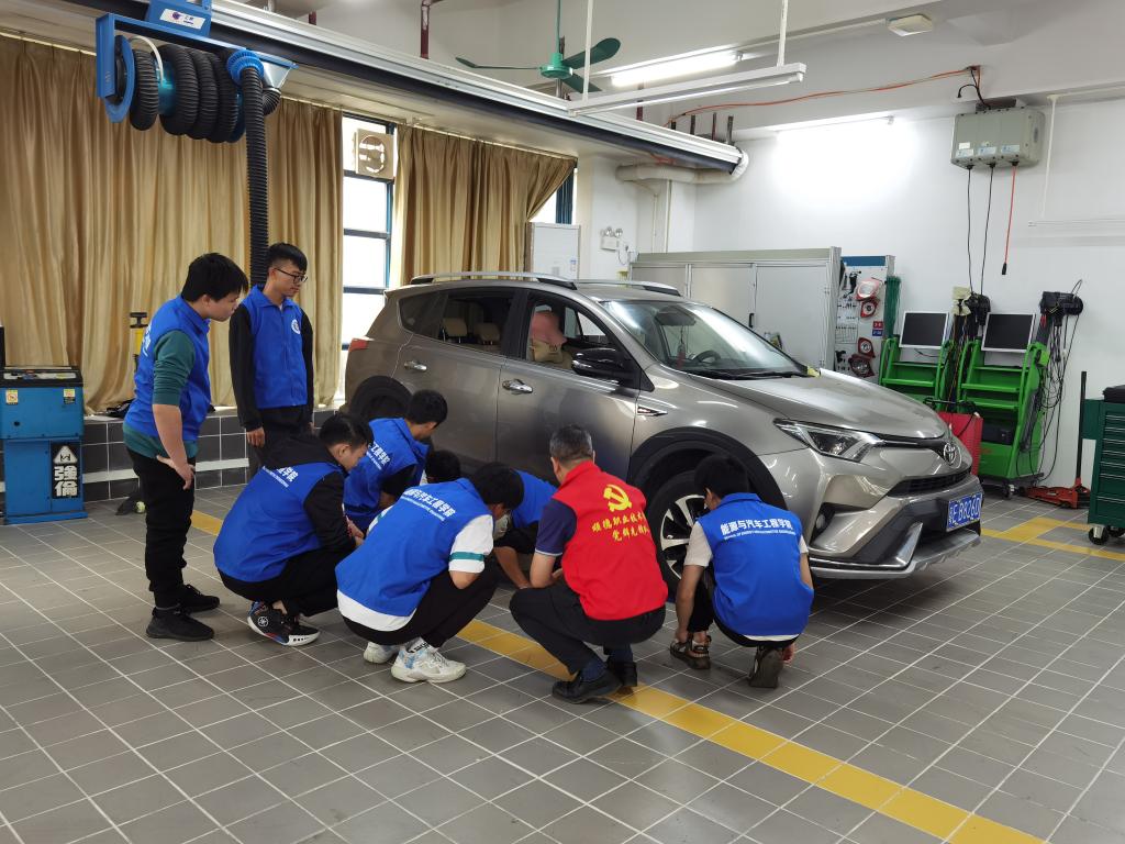 此次活动共为近30辆车提供免费安全检测服务,共15名教职工党员和30多名专业学生参与。活动先从接车开始,由汽车专业党员督导,学生按规范流程先进行外观确认、功能确认、物品确认和用户确认签名,后进行全车电脑检测、蓄电池寿命检测、发动机舱检测、空调检测、灯光检测、电器检测和底盘检测。整套流程共45种项目,参照企业运营模式,让学生得到充分的实践体验。