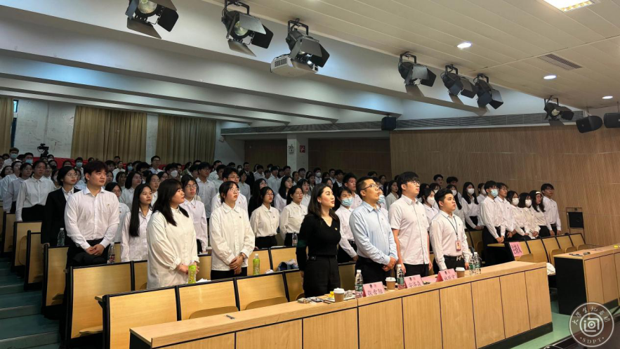 安济森和学生团委指导老师为学生骨干颁发聘书和工作证。全体学生骨干在团旗下庄严宣誓。大会还表彰了在智慧团建系列年末工作中各项综合数据排名靠前的学院团委。