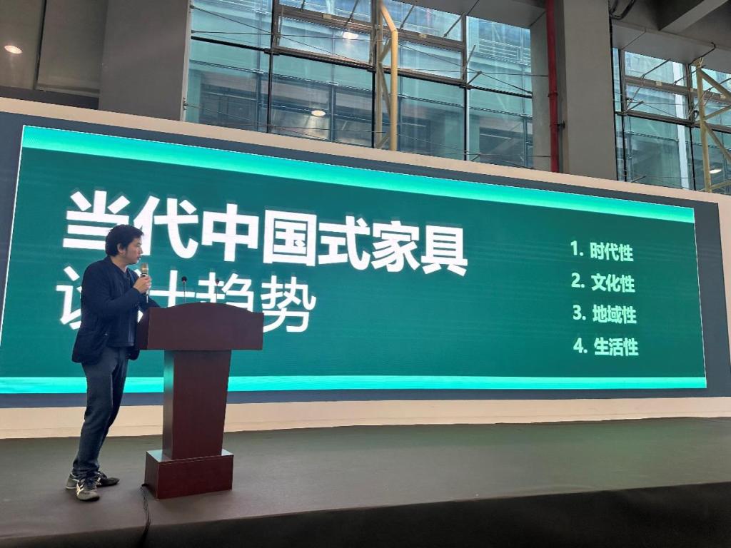 陈振益作《家具设计“中国基因”的挖掘与呈现》主题报告,认为应该在设计中找到符合内心秩序的基因与归属,展示家具设计里的“中国基因”是如何被挖掘、构建并最终体现在作品中的。