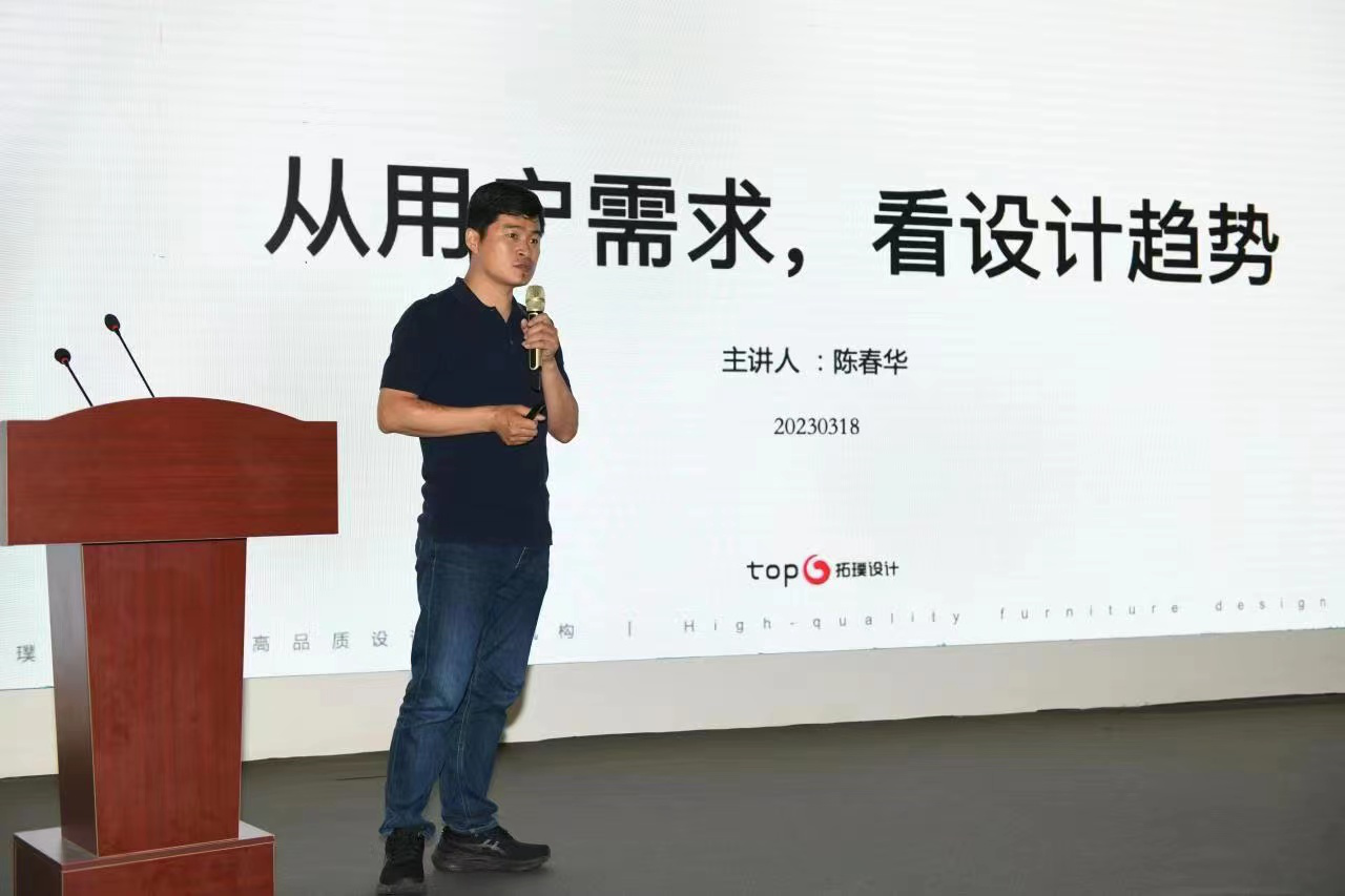 温建良带来《当代中国式家具设计趋势》主题报告,指出新中式家具应回应当代极简、轻奢、奶油、复古等流行元素,满足新消费新市场需求。他认为,可以尝试赋予产品更多“文化属性”,打破中式家具固有圈层界限,进一步提升产品力。