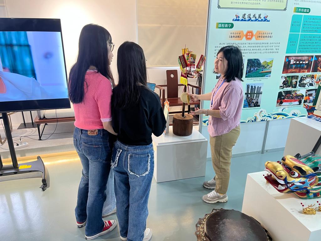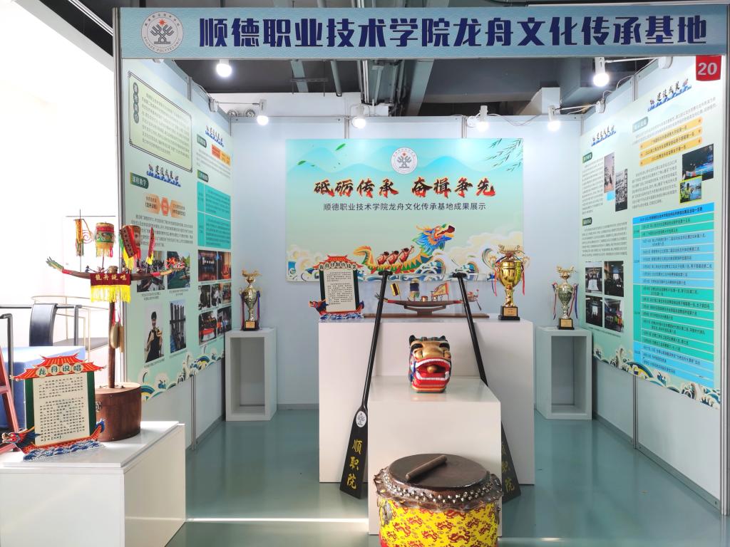 本次展示交流活动筹备数月,基地成员先后完成宣传片拍摄、图文采写、展板设计与制作、展品采购等工作,于3月18日前往承办院校布场。活动当天,成员们参加了经验交流会,就传承基地的建设发展进行了学习和交流。会后,基地成员向省教育厅二级巡视员邱克楠等领导嘉宾介绍了玩滚官网龙舟基地建设情况。展位现场还摆放了玩滚官网龙舟队取得的奖杯,陈列了多件龙舟相关国家级、区级“非遗”展品,吸引了许多观众驻足观看。