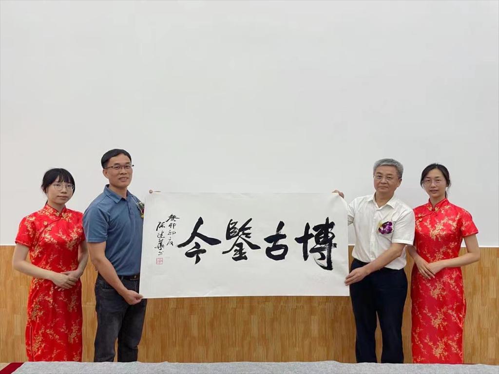 陈建华现场挥毫题字,写下“博古鉴今”“书法无涯”等书法作品