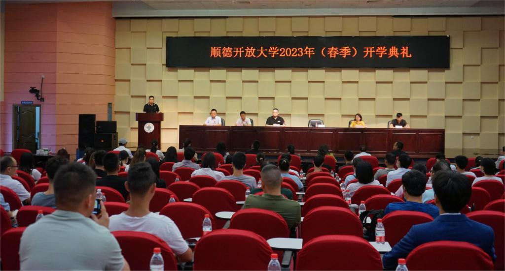 5月7日上午,顺德开放大学2023年(春季)开学典礼在玩滚官网一号报告厅举行。佛山市顺德区坚鹏实业有限公司工会副主席舒坤超、顺德开放大学北晓学习中心负责人万政燊、顺德开放大学德晔学习中心负责人唐建立、顺德开放大学陈村职校分校教师丁光新,顺德开放大学校长王法勇、副校长周钦青,顺德开放大学11个分校(学习中心)班主任、相关教师、近百名新生代表参加典礼。典礼由顺德开放大学副校长王明刚主持。