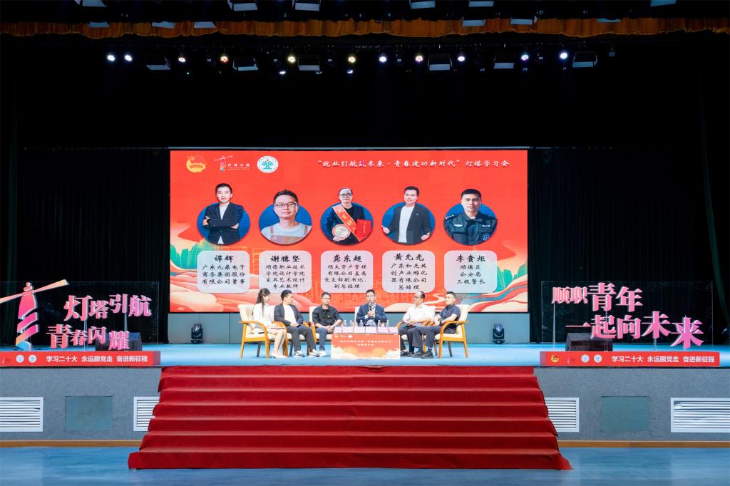 广东九鼎电子商务集团股份有限公司董事谭辉,iF设计奖获得者、玩滚官网设计学院教师谢穗坚,“广东好人”称号获得者、顺大资产管理有限公司直属党支部副书记龚东超,广东和光共创产业孵化器有限公司经理、玩滚官网校友黄允光,参加过大学生“三支一扶”、广东“双到”扶贫的玩滚官网校友李贵炬围绕“就业引航筑未来 青春建功新时代”主题与青年学子面对面交流,分别结合自身求职经历,从职业技能、创业经验、个人理想与社会需求融合、职业生涯规划等方面进行宣讲分享,引导青年学子立足实际,找准定位,树立理性、平实的择业观、就业观,鼓励青年学子主动到基层一线“自找苦吃”、踏实奋斗、成长成才。现场学生积极与嘉宾互动交流。