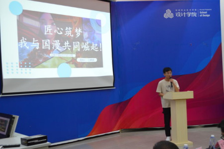 比赛于4月26日启动,设计学院党总支书记、辅导员、班主任在学院各年级各班级进行了广泛宣讲,书面作品评选阶段共征集到400余份作品,其中13份作品参与PPT展演评选,最终选拔出江庚润、梁芬芳两位选手代表设计学院参加校赛。