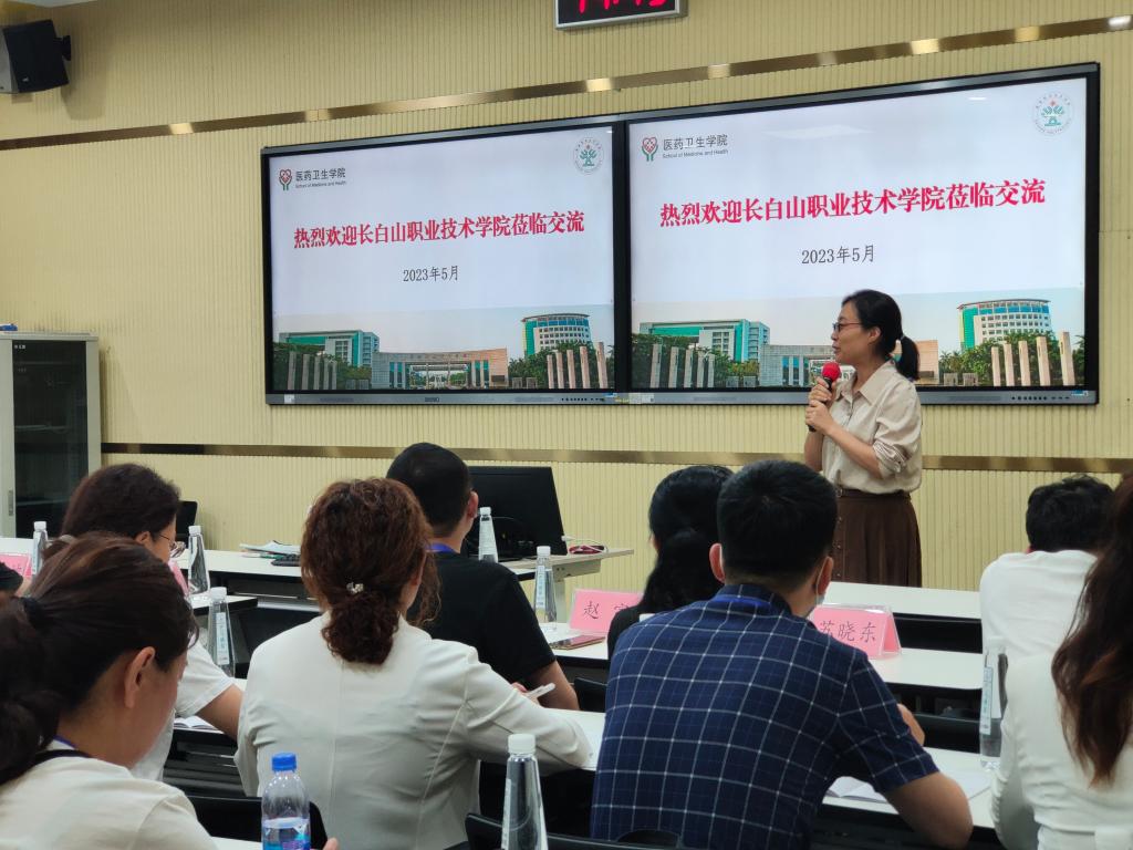 5月25日下午,长白山职业技术学院护理专业、药学专业骨干教师来到玩滚官网调研交流,参观医药卫生学院实训室,交流专业群建设经验,探讨职业院校专业带头人定位及课程建设理念、人才培养方案。