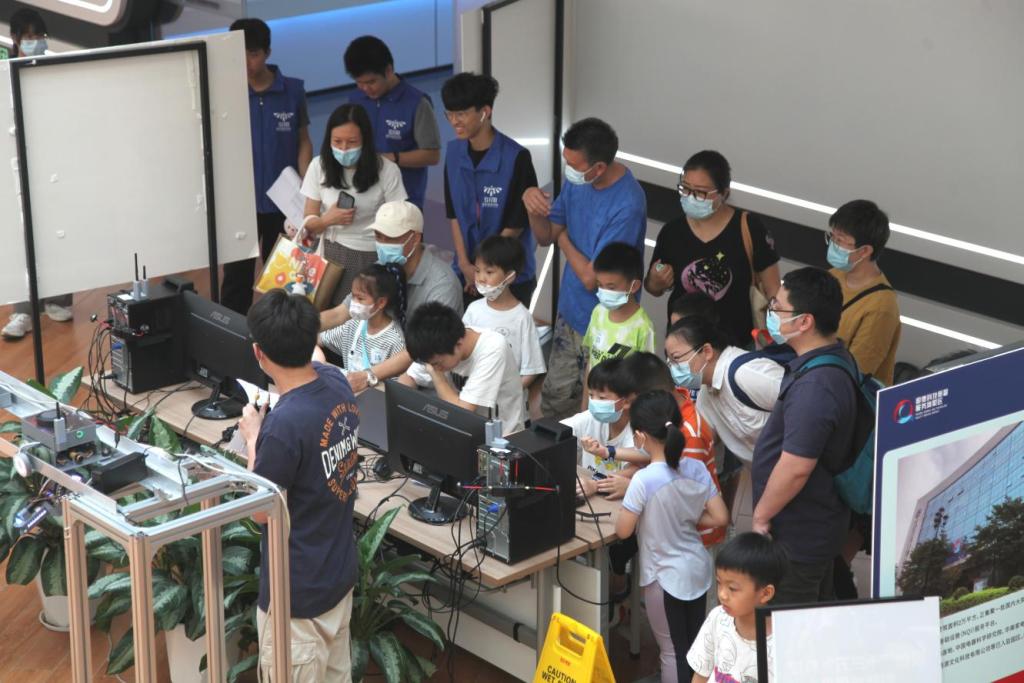 活动中,智能制造学院师生担任科普志愿者,带领学生和家长参观广东-亚琛工业4.0应用研究中心,向他们介绍工业4.0技术的发展和应用,激发孩子们对中国制造的自豪感、认同感。在工业机器人实训室,小朋友们体验机器人智能化操作,感受机器人精准的抓取能力和高效的生产效率;在3D打印技术实训室,小朋友和家长一起使用3D建模软件进行设计,现场打印制作一个个小物品;在机甲战车场地,小朋友们纷纷上场操作机甲战车,体验机甲战车的强大力量和精准控制。