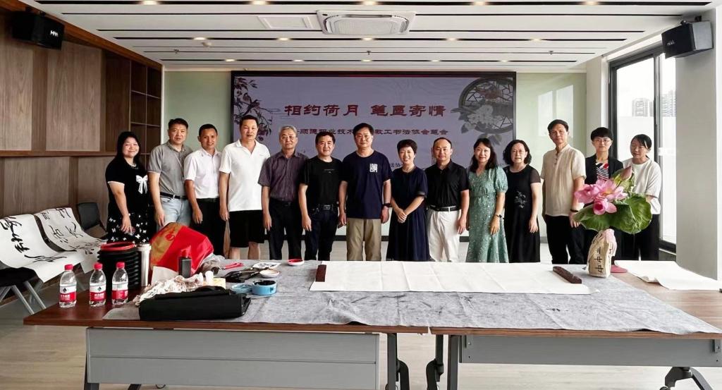 6月8日上午,由校工会、教工书法协会主办,人文学院、图书馆协办的“相约荷月 笔墨寄情”笔会在学校图书馆举办。学校校长夏伟、副校长罗丹,学校党委委员、组织人事处处长陈文海,学校关工委副主任陈建华,相关部门负责人、教工书法协会会员等参加活动。