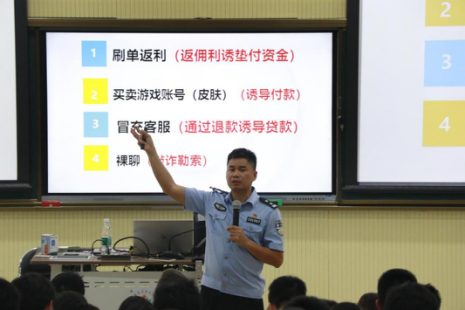 活动邀请顺德区公安局刑事侦查大队副大队长尤汉琪、顺德区公安局反诈分中心二级警长黄兴明、顺德农商银行大良支行风险经理孔雯钰、玩滚官网轻化与材料学院党总支副书记黄景文作专题辅导。学工部学生资助中心教师及300余名学生参加。