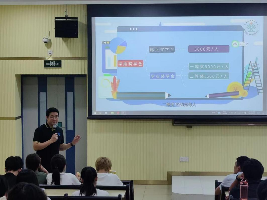 黄景文讲解了国家奖助学金、服兵役国家资助、生源地助学贷款、学费减免等国家资助政策,提醒同学们根据自身实际申报,希望同学们在获得资助的同时提高站位,努力学习,回报社会。