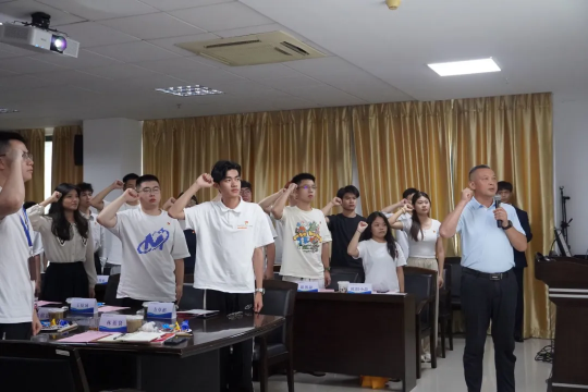 随后,在饶喜明带领下,全体党员面向党旗举起右拳,重温入党誓词。