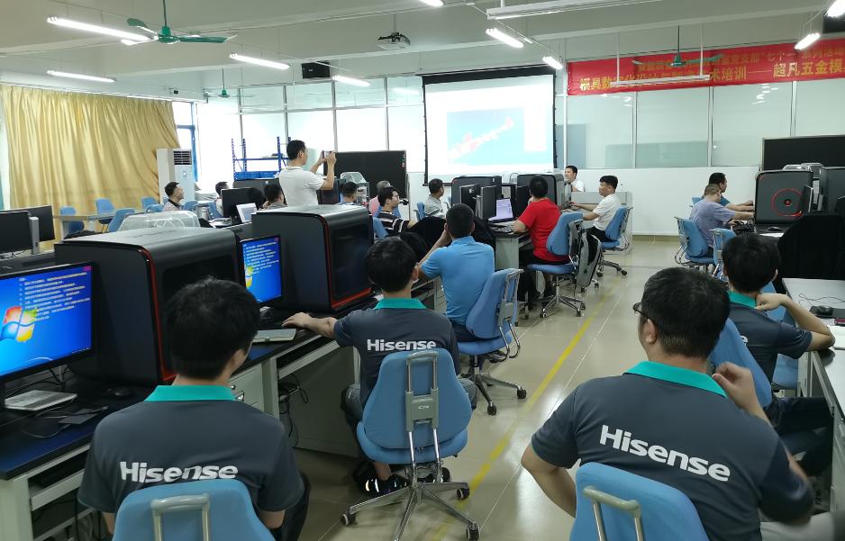 培训采用“做中学”的模式,培训讲师用典型五金模具的设计作为工作任务,引导学员一步步掌握模具的数字化设计技术。培训现场氛围热烈,学员们积极参与学习,主动向老师请教问题。