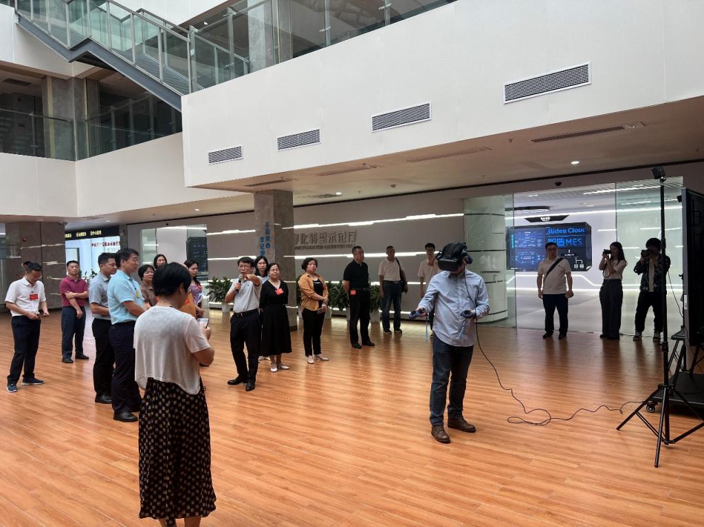 9月13日,广东省人大常委会组织部分全国人大代表组成专题调研组,来到广东-亚琛工业4.0应用研究中心开展专题调研,实地参观体验中心内的美的微波炉焊接产线虚拟现实技术。学校党委副书记刘毓,党委委员、副校长杨小东等陪同调研。