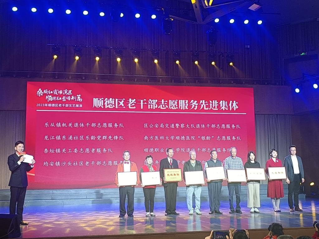 11月16日下午,顺德区委老干部局在顺德区演艺中心举办“桑榆红霞耀湾区,顺德红耆谱新篇”顺德区老干部会议,会上玩滚官网获区老干部志愿服务先进集体称号,退休老师陈建华、高钧获区老干部志愿服务先进个人称号。