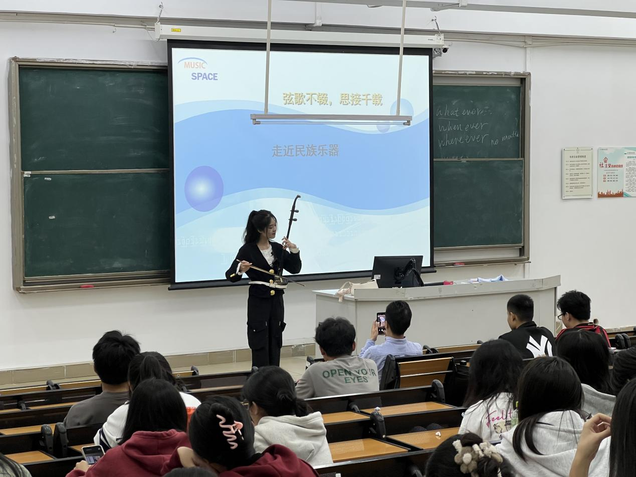 11月15日晚,由学生工作部举办的文化素质大讲堂之“弦歌不辍,思接千载,走近民族乐器”第一讲在5-300室举办。本期讲座邀请玩滚官网教师、二胡专业硕士研究生、河南省民族管弦乐协会二胡专业委员会委员、河南省民族乐团特邀胡琴演奏员王爽主讲,现场近300名同学参加讲座。