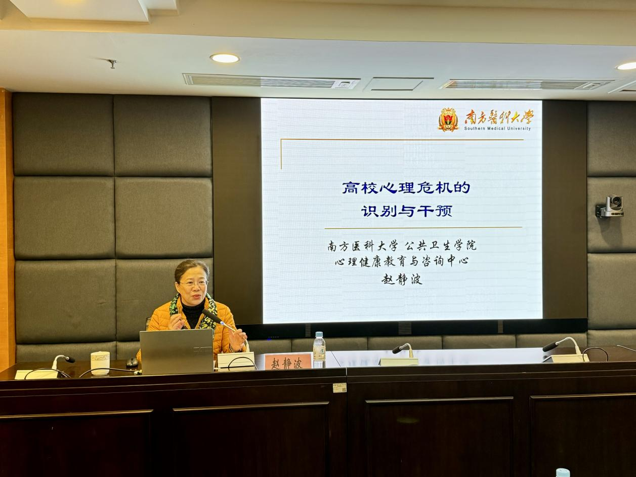 12月19日,学生工作部邀请教育部普通高等学校学生心理健康教育专家指导委员会委员赵静波教授来校作《高校心理危机的识别与干预》专题培训讲座。各二级学院党总支负责人,学校专兼职心理教师、辅导员、班主任以及学生工作部有关人员参加讲座。讲座由学生工作部副部长揭育通主持。