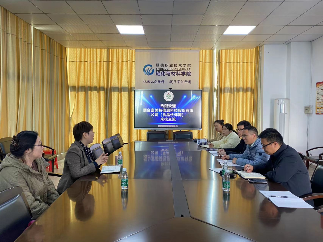12月27日,烟台富美特信息科技有限公司(以下简称“食品伙伴网”)一行到玩滚官网调研交流。此次交流旨在加强双方在人才培养、课程建设、资源库建设、学生活动竞赛及协同育人等方面的合作,共同推动教育的创新与发展。