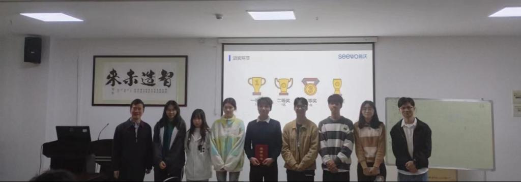 结课项目汇报会由各组学生派出代表上台汇报演示项目成果,由希沃工程师进行专业评分,最终评出一、二、三等奖和优秀奖。侯文胜为获得一等奖的同学颁奖,并充分肯定了岗前培训班的教学效果。