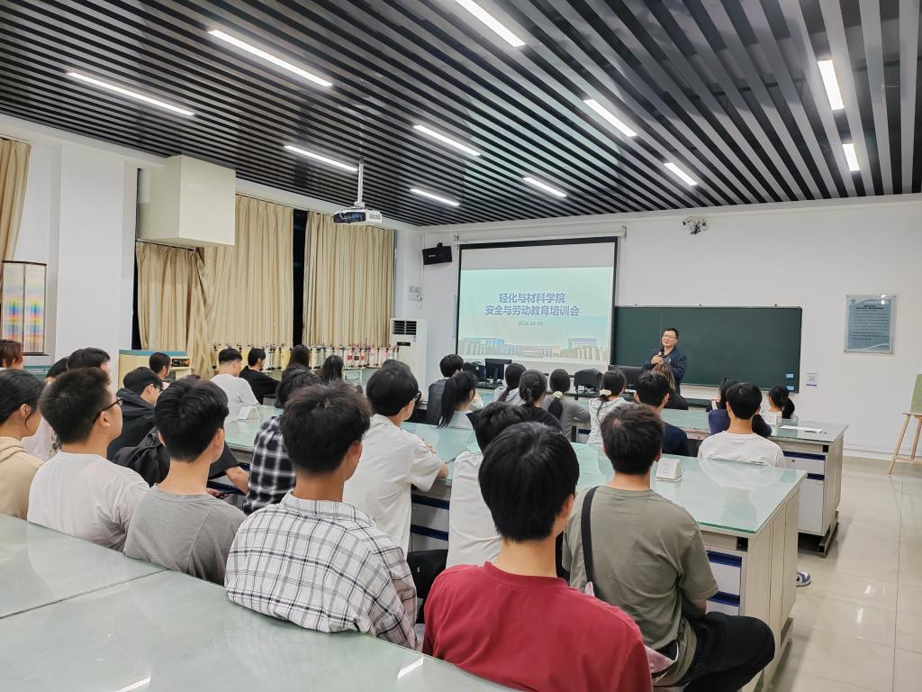 4月9日,轻化与材料学院举办实验室安全与劳动教育专题培训会,旨在提高实验室安全卫生管理水平,提升学生劳动素养和安全意识,为师生营造一个安全、卫生的实训环境。本次培训由轻化与材料学院副院长刘锋主讲,实训中心唐秋实、吴嘉培、肖瑞雄老师及各班级班干部代表共计50余人参加活动。