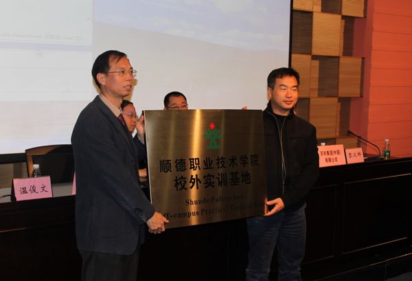 随后,百利集团董事长梁纳新与设计学院负责人签订人才战略合作伙伴框架协议。教务处相关负责人为百利集团校外实训基地授牌。