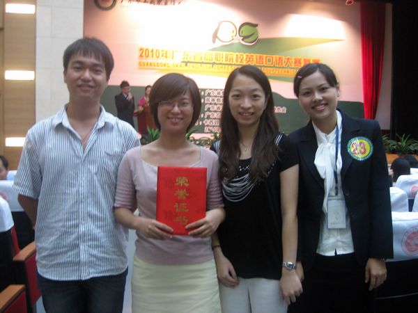 10月16至17日,“2010年广东省高职院校英语口语大赛”在广东农工商职业技术学院举行。来自全省48所高职院校的91名选手(公共英语组48名选手,英语专业组43名选手)参加了比赛。玩滚官网电子信息工程系谭伟文和外语系陈月姬同学分别取得了公共英语组“二等奖”和英语专业组“三等奖”的好成绩。