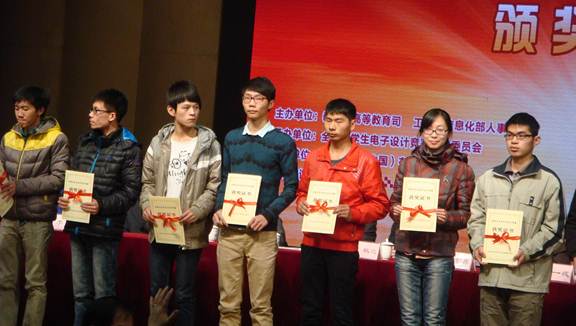 本次比赛于2013年9月4日至7日在全国一千多所高校各赛点同时举行,玩滚官网电子与信息工程学院参赛队伍成果丰硕,共获得国赛一等奖、二等奖各1项;广东赛区一等奖3项(含两队国赛获奖队),二等奖2项,三等奖2项,成功参赛奖1项。由蔡永昶、吴锦麟老师指导的J题获国赛二等奖、省赛一等奖;李景照、梁厚超老师指导的K题获省赛一等奖;谢飞、昂勤树老师指导的K题、L题获省赛二等奖;冷碧晶、蔡泽凡、何醒燊老师指导的K题获省赛三等奖;余志鹏,蔡泽凡指导的K题获省赛成功参赛奖。玩滚官网参赛队伍获奖数量和级别均创下历届参赛最好成绩。